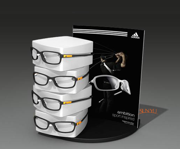 产品说明:太阳雨有机玻璃眼镜展示架,是太阳雨公司为适应市场需要,为各品牌眼镜厂商及经销商量身设计定做的高档展示道具,其在提升品牌形像,增加产品卖点上,具有增光添彩的作用,尤其在各大卖场上更显特色,更能吸引顾客眼球,从而创造更多的经济效益.
